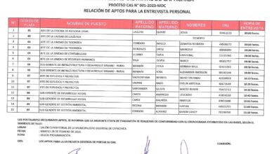 RELACIÓN DE APTOS PARA LA ENTREVISTA PERSONAL DEL PROCESO CAS No. 001-2023-MDC
